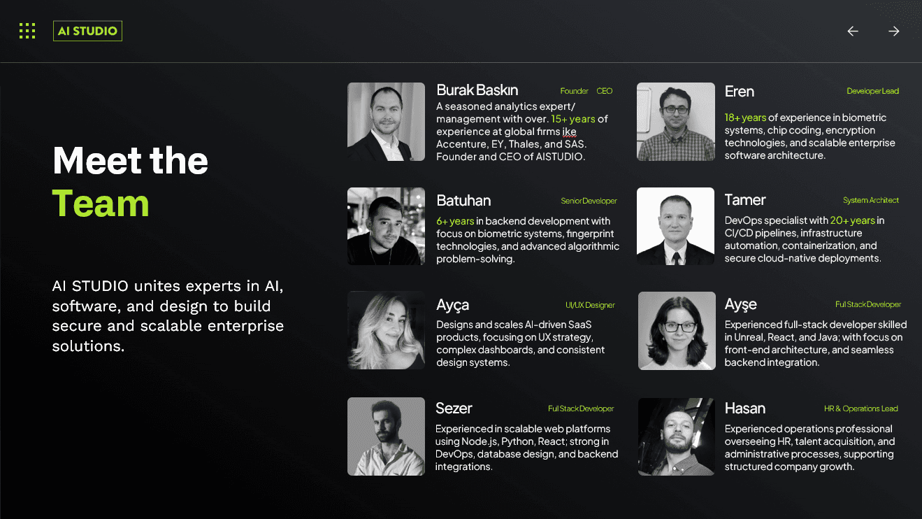 Our team combines deep technical expertise with hands-on industry experience from advanced analytics and AI-driven automation to secure system architecture and user-centered product design.